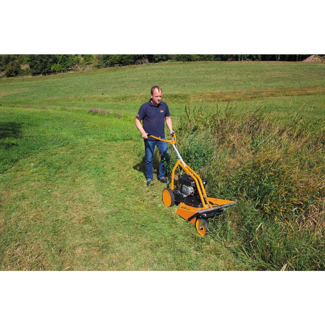 Gemacht für hohes Gras mit leichtem Gestrüpp bis 90 cm. Mäht und mulcht in einem Schritt. Vor allem im ebenen und leicht unebenen Gelände fühlt sich der AS 62 4T B&S zu Hause. Der typische Einsatzort der Maschine sind Streuobstwiese, Feriengrundstücke und große Gartenanlagen. Durch beidseitige Freiläufe im Radantrieb und die beweglichen Vorderräder lässt sich der Allmäher komfortabel manövrieren. Ideal für Privatkunden, Dienstleister und Vereine.